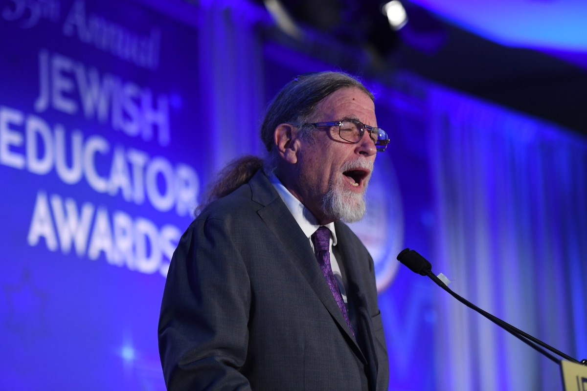 Hazzan Mike Stein, father of 2025 Jewish Educator Award recipient Jared Stein, delivers the honor of leading the American and Israeli national anthems.