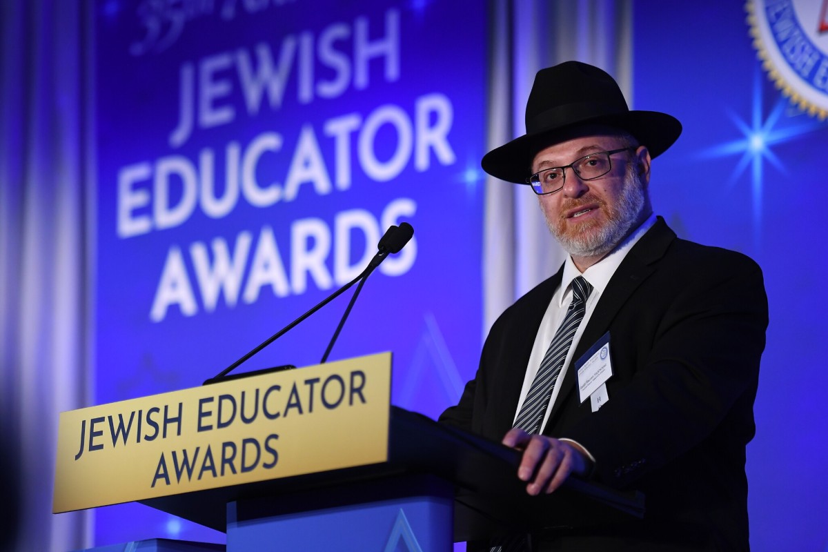 2025 Jewish Educator Award recipient Rabbi Reuven Youkhehpaz, fifth grade boys rebbe at Yeshiva Aharon Yaakov/Ohr Eliyahu, thanks his mentors, colleagues, wife and family for shaping him and inspiring his work as an educator every day.