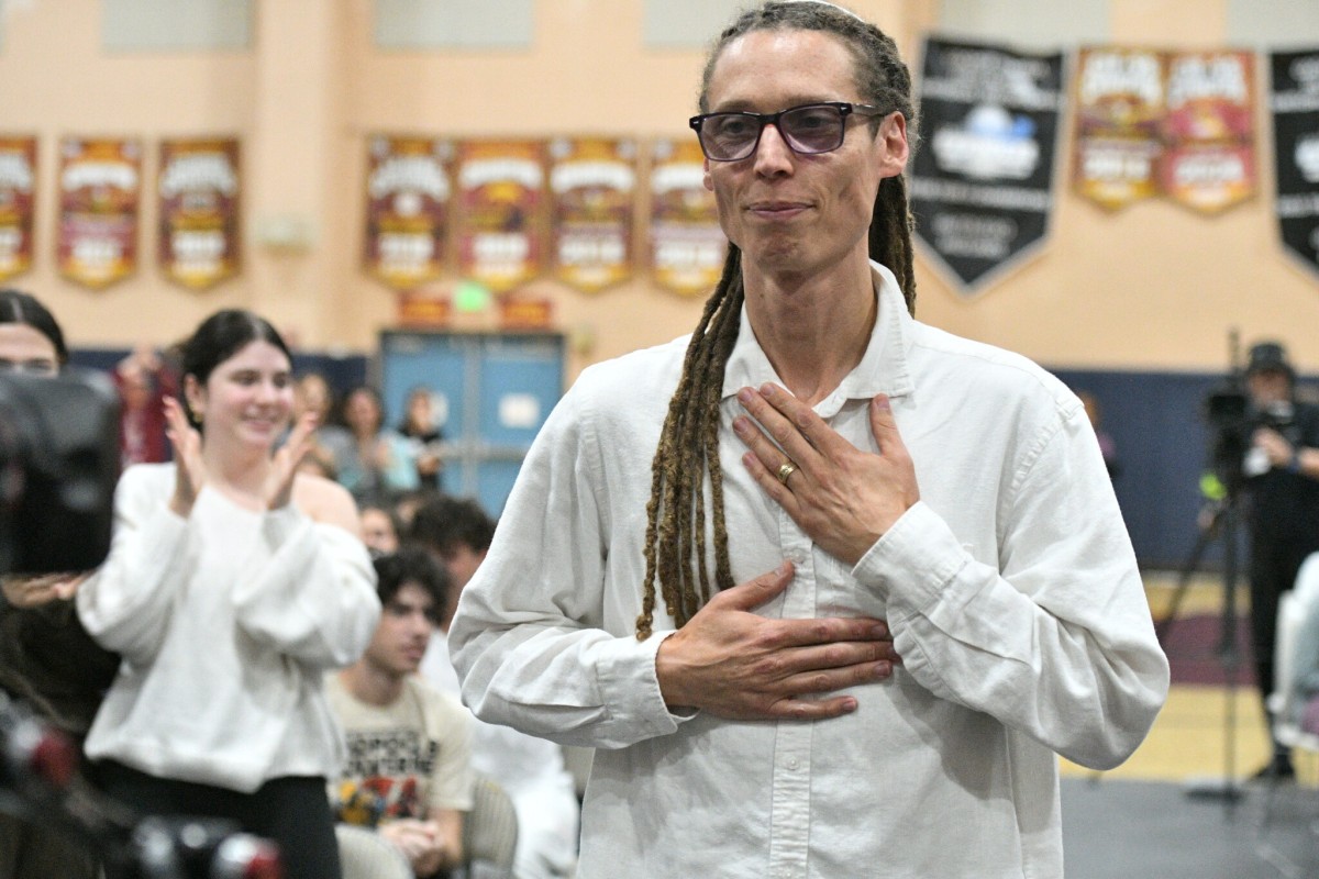 It starts to sink in for Jared Stein: he's the recipient of a 2025 Jewish Educator Award and today's assembly is all for him!