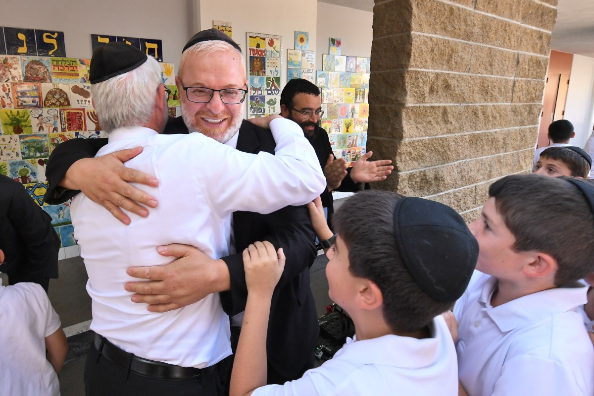 Rabbi Reuven Youkhehpaz is being hugged by a colleague.